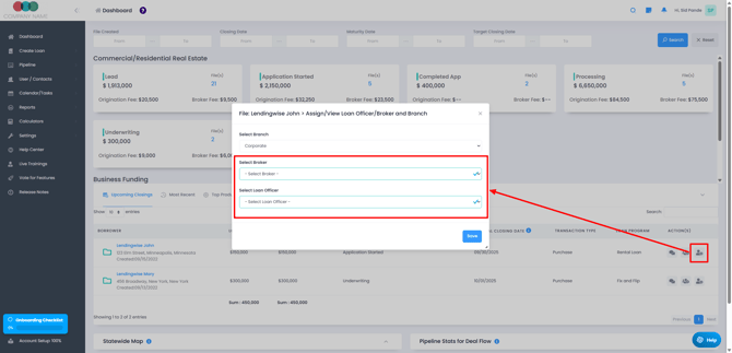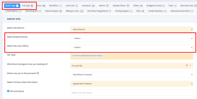 - Select the appropriate Loan Officer or Broker from the dropdown.