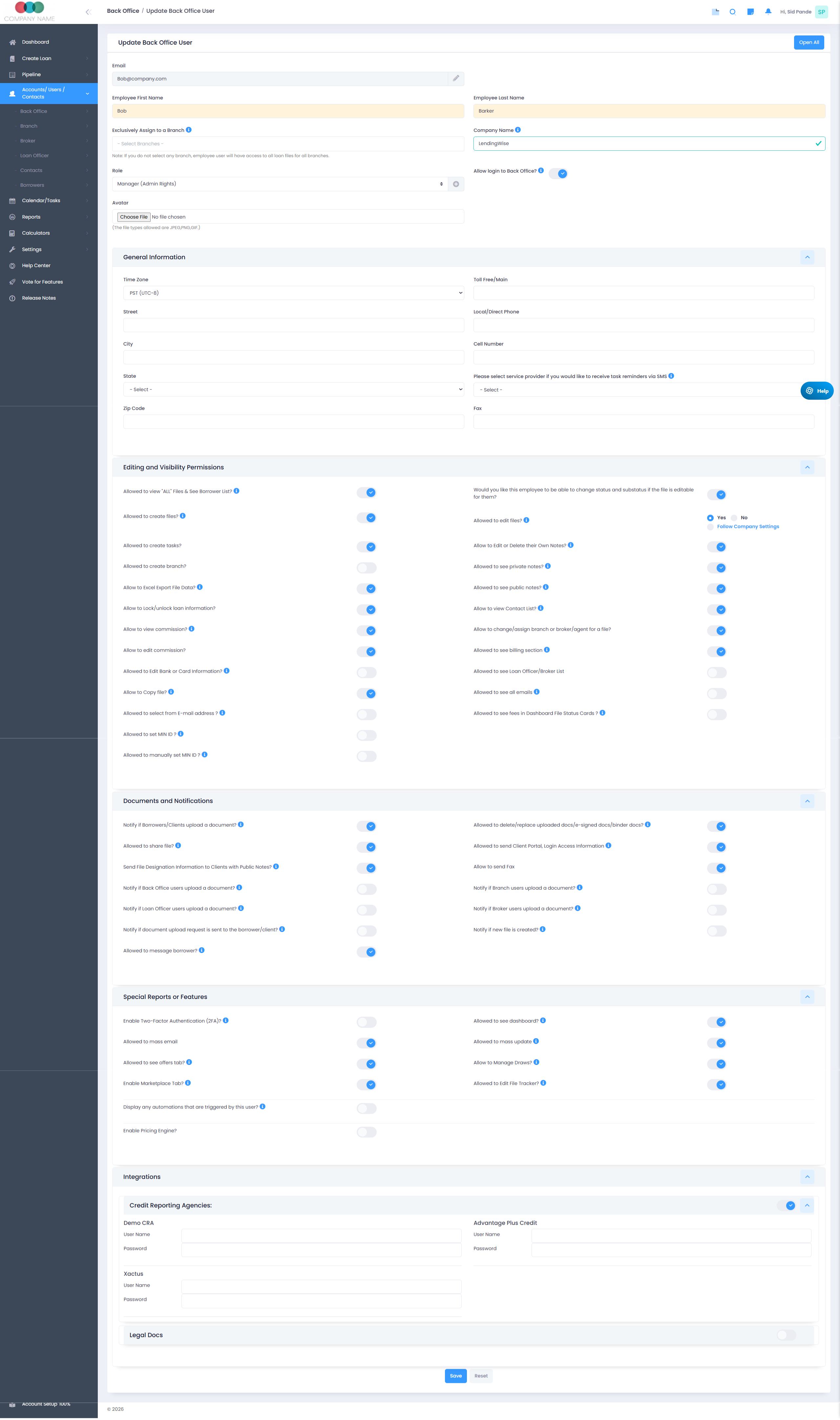 These administrators can control what back-office users can see and do within the CRM and LOS system.