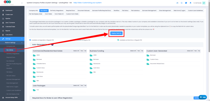 Navigate to Settings > Platform Settings > Doc Library > Click on "Display Field ID's" icon.