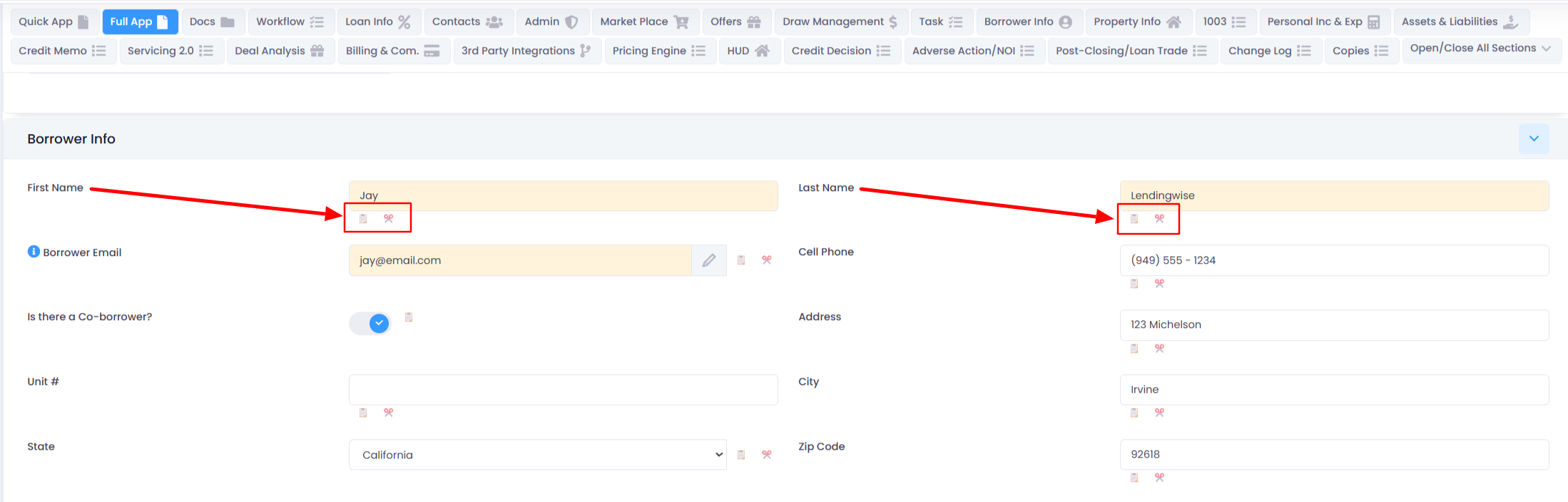 For the Doc Wizard tool and email templates, Turn On the field id's. You'll see icons next to each field within the loan file but the icon you want for email templates and doc wizard docs will be the scissors icon ✂️