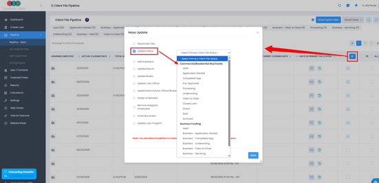Instead of updating each file individually, you can bulk change loan statuses in just a few clicks.
