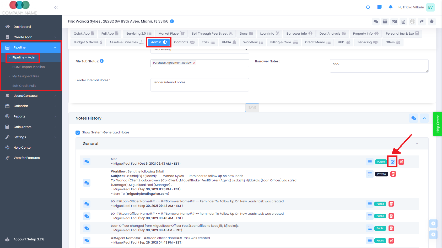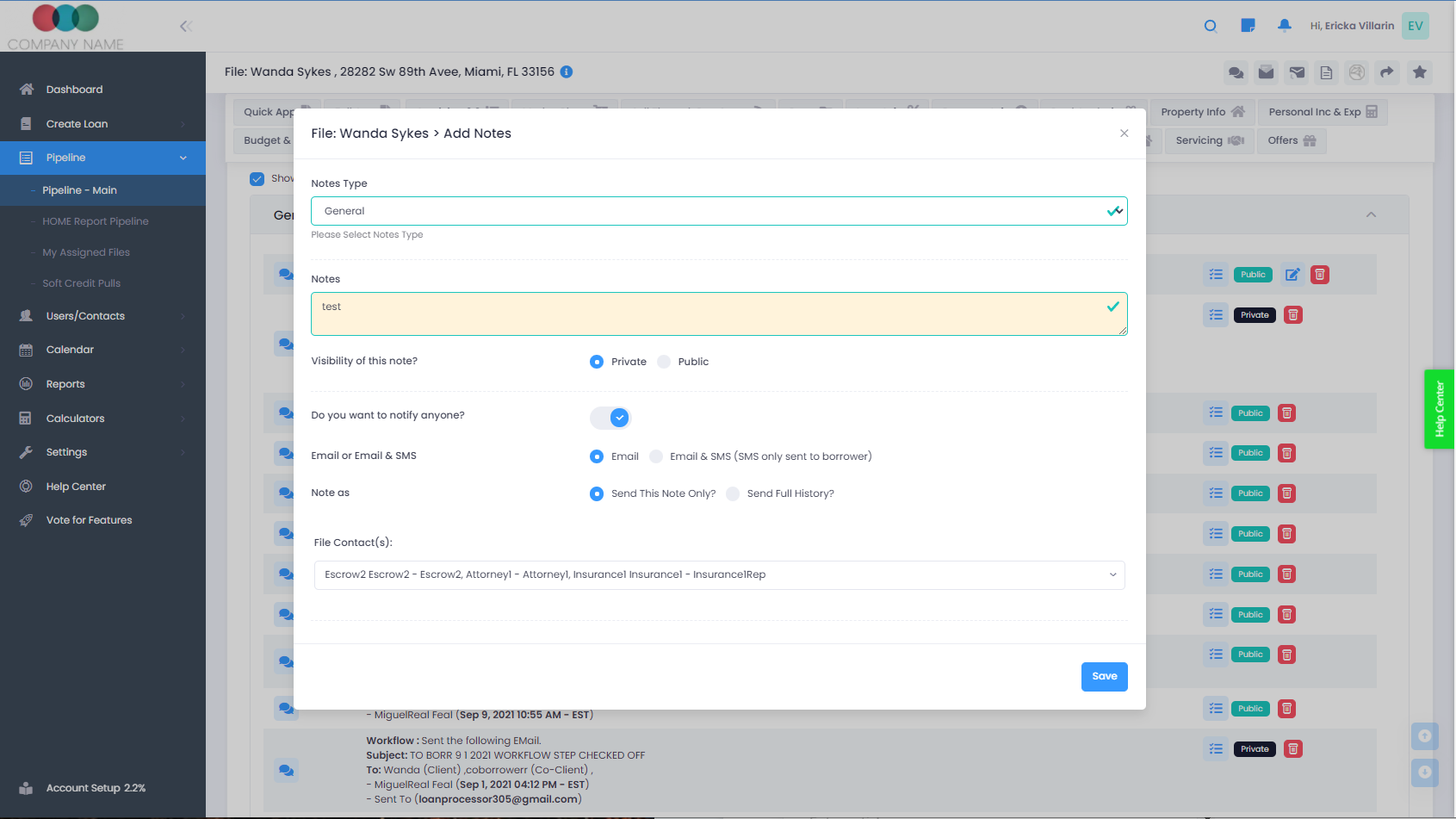 Users can enter notes and select a category, like lender notes, call log, borrower notes, attorney notes, underwriting notes, etc... . The category options can be enabled in the company profile section. �Here is a quick video showing how it works: