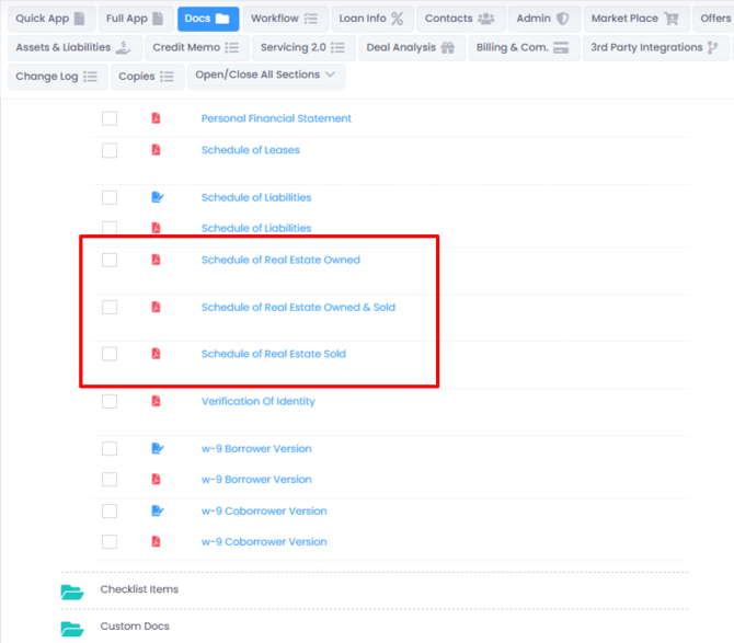You can collect Borrowers "Schedule of Real Estate Owned and Sold (SREO)" using the Quick and Full App webforms. This data can be collected to populate on the application and even a separate form as an "Auto-Generated Doc" from our Doc Library.